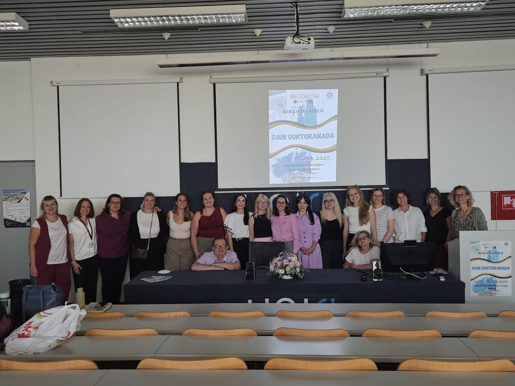Održani su jubilarni 5. Dani doktoranada na Fakultetu biotehnologije i razvoja lijekova. Prezentacije su uključivale 11 predavanja doktoranada, studentica Iva Brekalo je uspješno obranila temu svog doktorata, a Alumni priču nam je ispričala bivša studentica i dobitnica rektorove nagrade Martina Mušković Lukić. Plenarno predavanje je održala profesorica Rima Al-awar sa Instituta za istraživanje raka iz Ontaria. Doktorandica Matea Kršanac osvojila je nagradu za najbolju prezentaciju. Čestitke i zahvale svima na sudjelovanju i ugodnom druženju!